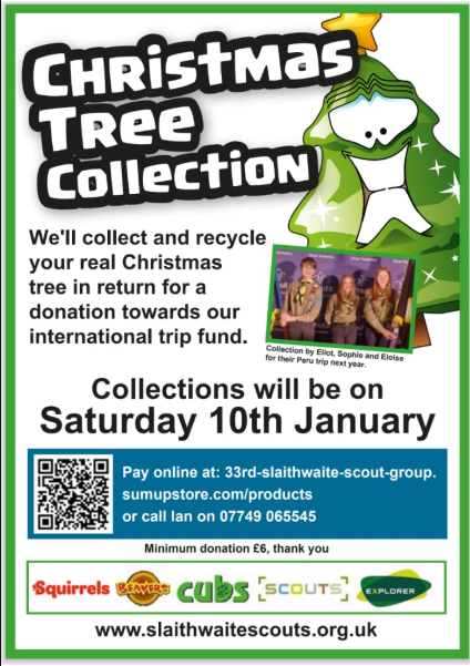 We’ll collect and recycle your real Christmas tree in return for a donation towards our international trip fund!